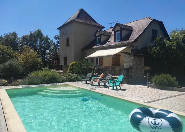 Situé à 11 minutes de marche de la Maison de la Photo Jean-Marie Perier, cet établissement Villa de vacances avec piscine chauffée Villeneuve-dʼAveyron dispose d'une terrasse avec une vue sur la piscine.